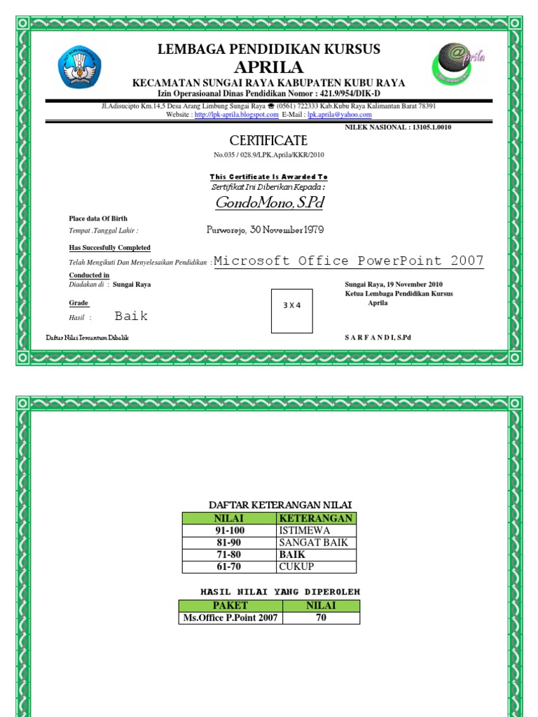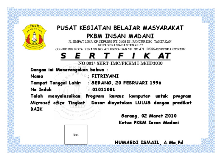 Text of contoh sertifikat kursus komputer. Gallery foto pelatihan manajemen asn di ipb. Selain ditujukan kepada peserta yang mengikuti pelatihan, sertifikat ini juga ditujukan pembicara sebagai nara sumber, serta perusahaan sebagai sponsor acara pelatihan. Contoh sertifikat sertifikat pelatihan, seminar atau workshop sangat dibutuhkan oleh peserta sebagai bukti fisik bahwa mereka pernah mengikuti kegiatan tersebut. Lkp (lembaga kursus dan pelatihan) my computer jalan pasar padang panjang ps.